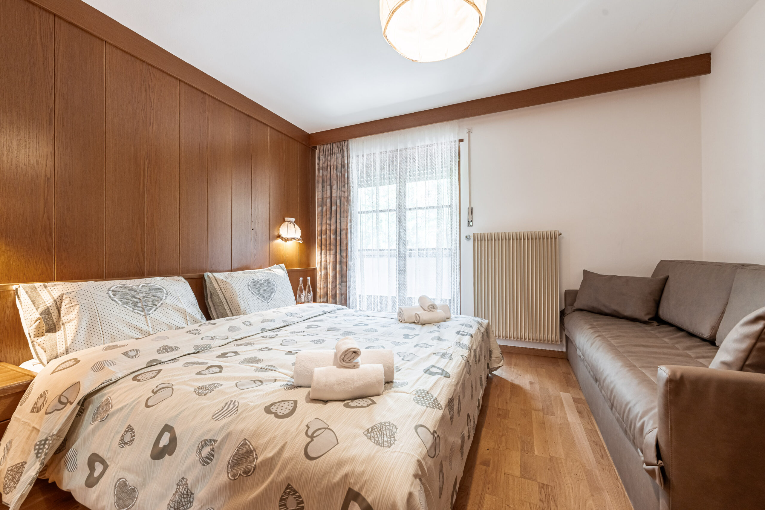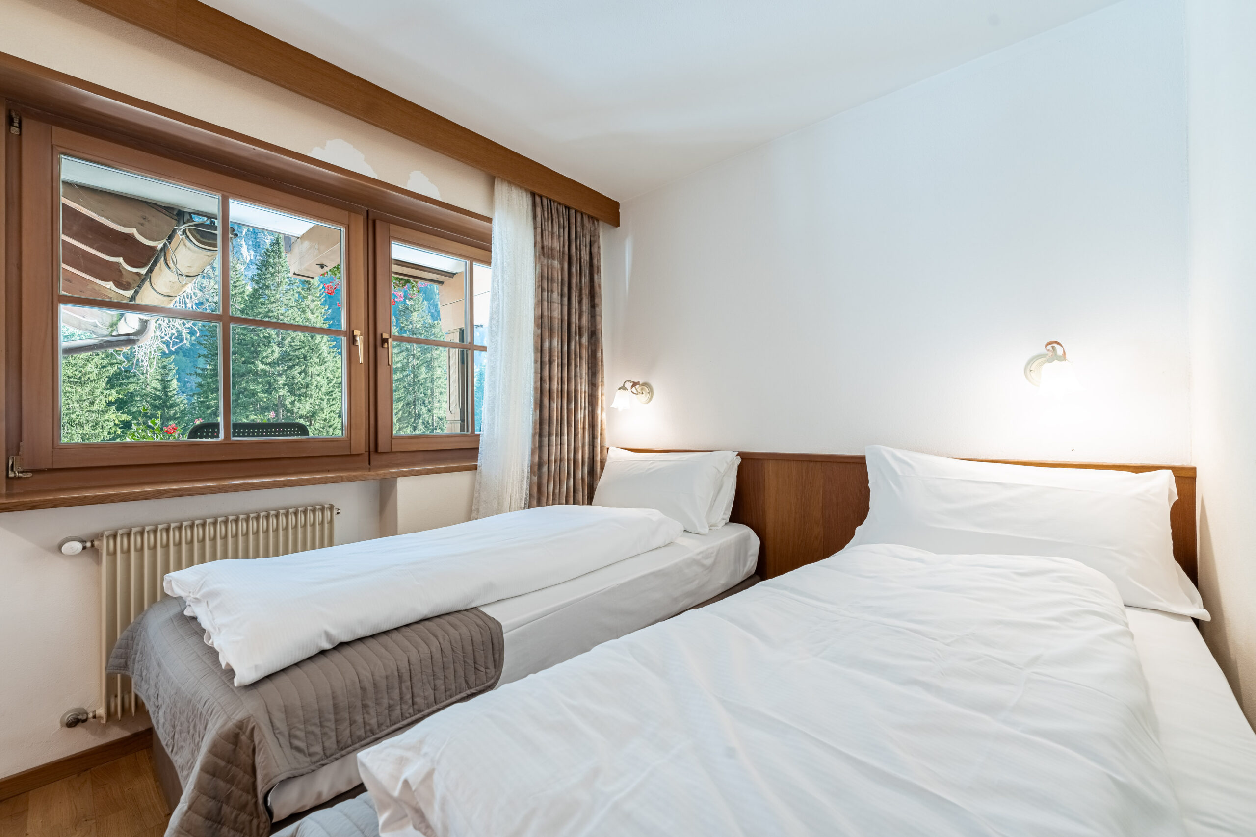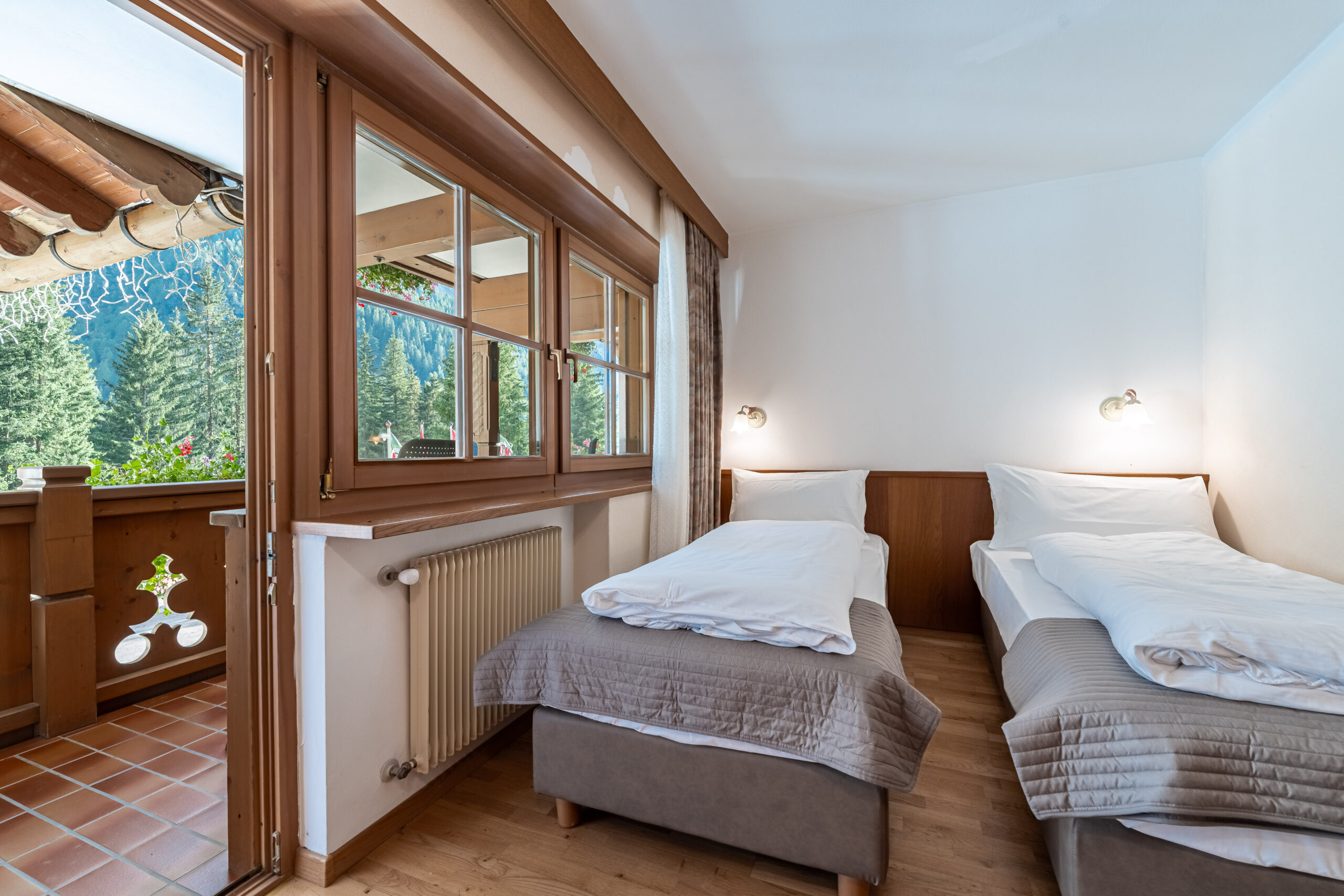The Classic Room at the Hotel Villetta Maria welcomes guests in a warm and familiar environment, tastefully furnished and characterized by a pleasant traditional atmosphere. Equipped with all essential comforts, this room offers a welcoming retreat after a day spent exploring the wonders of Canazei. A place where you can feel at home, immersed in the enchantment of the Dolomites.